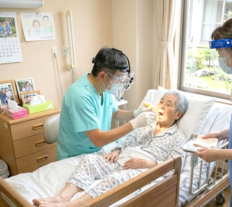 「お口の健康を守りたいけれど、足腰が不自由で通院が難しい」「寝たきりの家族に歯科治療を受けさせたい」といったお悩みはありませんか?
